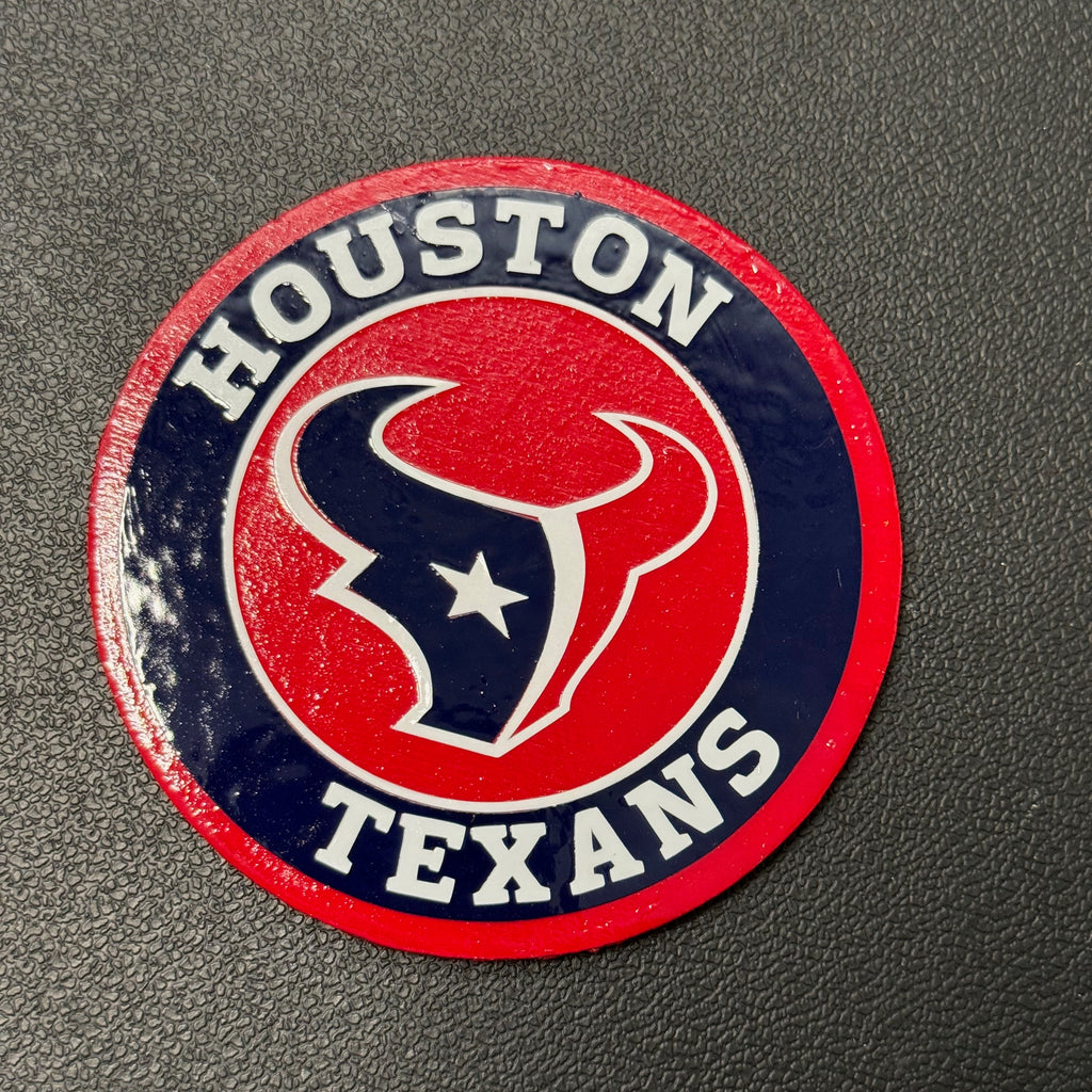 Show your team pride with this bold magnet! Perfect for your fridge, locker, or any magnetic surface, this durable magnet features vibrant colors in a circle design with a logo and text. A must-have for any true Texans fan!